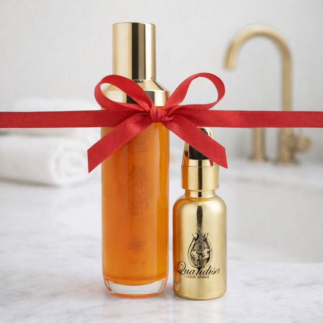 This carefully curated set combines the Natural Intimate Oil Cleanser (120 ml) and Li Quandisa Nourishing Intimate Oil (30 ml) to provide a complete and holistic approach to intimate care, respecting the skin’s natural balance and pH flora.